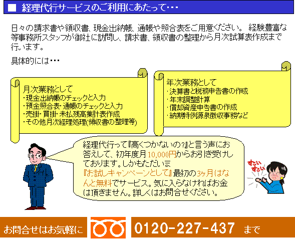 | ホーム 事務所早わかり 業務内容 無料決算診断